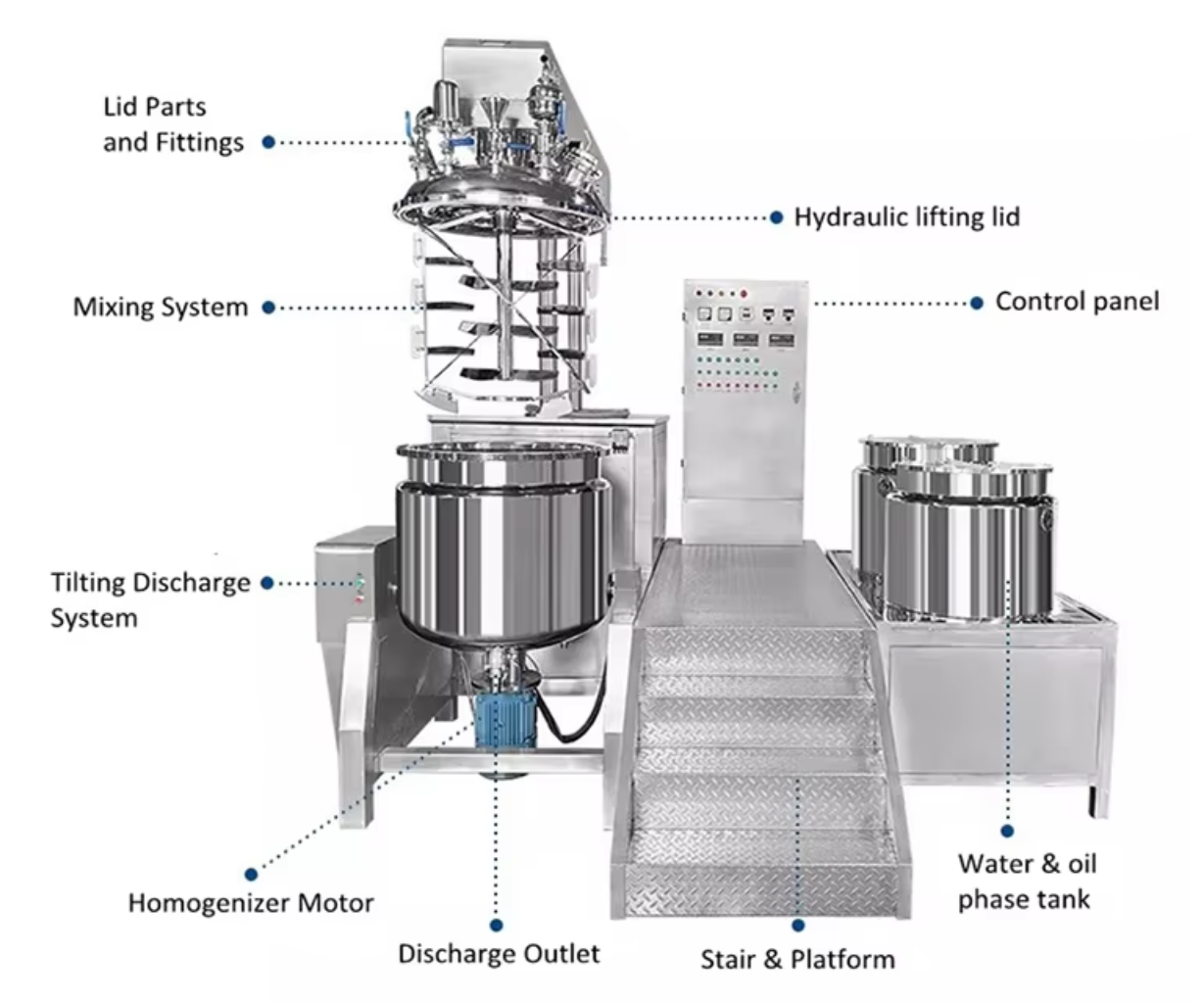 SUS316L/SUS304 Vacuum Homogenizer Emulsifier for Cosmetic Cream
